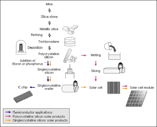 cells. Due to the semiconductor down cycle in 2001 that saw polysilicon