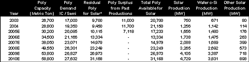 polysilicon at $60/kg in 2005 doubled from $30/kg in 2003. For companies
