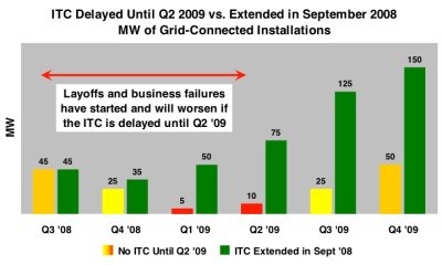 With just over 120 days left before federal incentives expire, solar businesses in the U.S. are taking action to protect their core business. Layoffs, announced and unannounced, have started. Construction projects are being canceled or postponed and new sales have dropped dramatically. Uncertainty is forcing our solar businesses into difficult decisions -- not if, but when to cut and, how deep to cut. The coming loss of talented people and companies should be viewed as a loss of our country's intellectual property -- and a national tragedy. It has been my habit over the years to look for