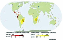 Map reveals species most at risk from climate change
