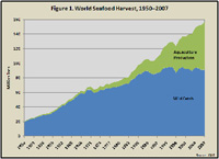 Total global fish production, including both wild catch and aquaculture, rose to about 157 million tons in 2007, the most recent year with data, up from 153 million tons in 2006.1 (See Figure 1.) Reaching a record high as the industry continues to grow, nearly half of the fish produced for human consumption came from aquaculture.2 (See Table 1.) Aquaculture production has consistently grown by nearly 9 percent annually worldwide since 1970, making it the most rapidly growing animal food sector.3 The Asia-Pacific region produces the overwhelming majority of the world’s aquaculture output: 89 percent in terms of quantity and 77 percent in terms of value.4 This is in large part due to China’s long tradition of fish farming and its massive appetite for seafood; this one country accounts for 67 percent of the global production and nearly 50 percent of the market for farmed fish.5 (See Figure 2.)