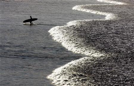 in the waves off Swami's Beach in Encinitas, California December 17, 2004.