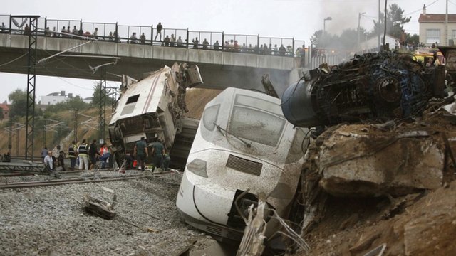 This is a country which has invested huge amounts of money in its rail network, he says. Spain's last major rail disaster was in 1972 when 77 people were killed in a derailment in Andalusia in the south. 'A Dante-esque scene'Railway firm Renfe said the train came off the tracks on a bend about 3 or 4km (2-2.5 miles) from Santiago de Compostela station at 20:41 local time (18:41 GMT). It was on the express route between Madrid and the ship-building city of Ferrol on the Galician coast. Renfe says it and the track operating company Adif are collaborating with a judge appointed to investigate the accident. Government officials said they believed the crash was an accident, but that no statement would be made regarding the cause without a proper investigation. "We are moving away from the hypothesis of sabotage or attack," one unnamed official said. Rescue workers have continued to search for survivors in the wreckage. They have so far recovered 73 bodies from the accident site, while four more people died in hospital, a spokeswoman for Galicia's supreme court said on Thursday. Judges are responsible for registering deaths in Spain. It is not known how many Renfe employees were on board the train. Images from the site showed bodies covered with blankets next to the tracks, as emergency crews searched the wreckage. More than 140 passengers were receiving treatment for a range of light to more serious injuries, a health official told reporters on Thursday morning. Residents flocked to hospitals in the area to donate blood in response to an appeal. Meanwhile, 320 Spanish police officers were deployed to help out the rescue operation. The leader of the regional government Alberto Nunez Feijoo described it as "a Dante-esque scene", in comments to Radio Cadena Ser. One witness, Ricardo Montesco, described how the train carriages "piled on top of one another" after the train hit a curve. "A lot of people were squashed on the bottom. We tried to squeeze out of the bottom of the wagons to get out and we realised the train was burning...I was in the second wagon and there was fire. I saw corpses," he told Spanish Cadena Ser radio station. Several eyewitnesses described the train travelling very fast before it derailed. The derailment happened on the eve of Santiago de Compostela's main annual festival where thousands of Christian pilgrims were expected to flock to the city in honour of Saint James. The city's tourism board said all festivities planned for Thursday have been cancelled. Local journalist Francisco Camino said the region was in shock. "This is a tiny place and nothing happens here, nothing important or tragic," he told the BBC. "We were preparing for the celebrations and now this could turn out to be the worst train crash in many years. Prime Minister Mariano Rajoy, who was born in Santiago de Compostela, convened an emergency ministerial meeting late on Wednesday. He is due to visit the scene of the accident on Thursday. Read more: http://www.bbc.co.uk/news/world-europe-23442018 |