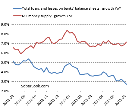 So our friends in the economics profession should be able to sleep well at night. The divergence between the trajectories of M2 money supply and bank loan balances has explanations that do not violate key principles of money creation.