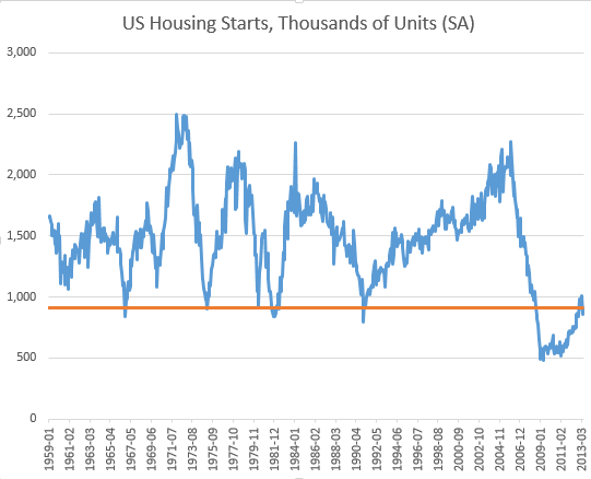 Residential construction has a long way to go to see full recovery - even to the "pre-bubble" years.