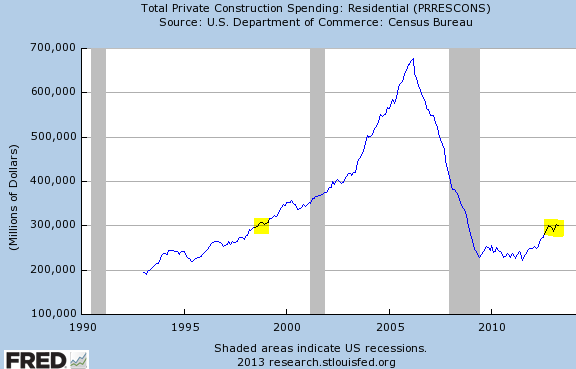 With financing tough to come by, while we've seen improvements in residential construction spending, it is still at 1998 levels.