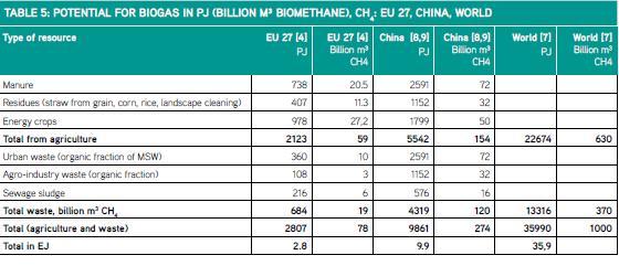 The World Bioenergy Association has made available a comprehensive fact sheet that discusses current and potential global biogas supply for a variety of uses or markets, including electricity, heat and transportation fuels. The document is part of a five-part series being released by the WBA, for industry and media use as a verifiable, easily referenced source of information about the renewable energy industry. The WBA emphasizes the great global potential for biogas, pointing to estimates that predict biogas could consist of around 6 percent of the global primary energy supply, or one-third of the current use of fossil gas. The group is advocating for all countries, developing and developed, to set up a biogas development plan with the target to use at least 30 percent of the biogas potential by 2030. These plans should only contain quantitative targets but also an array of measures and a system of monitoring to reach the targets, according to the WBA. The new WBA document covers the cost of select biogas projects, gauging the investment at about 5,000 euro ($6,035) for an installation of about 150 kW in size. “The specific investment cost (per) kW or MW capacity is higher for smaller plants and lower for bigger plants,” it says. It also details the composition of biogas by component percentage and potential annual yields by animal—for example, one milking cow producing 20 cubic meters of liquid manure per acre yields 500 cubic nanometers of biogas. Putting into perspective how many cows would be needed to power a motor generator of 100-kW electric output, the report indicates that with an electrical efficiency of 35 percent and an annual production of 800,000 kWh, 470,000 cubic nanometers of biogas would be required, or the equivalent of biogas output from a manure slurry of 950 intensively housed milking cows, 6,000 pigs or 45 hectares of maize. Moving on to biogas use and applications, the report discusses biogas potential by country according to feedstock, recognizing that U.S. opportunities are vastly underutilized. There are about 2,200 sites producing biogas in the country: 191 anaerobic digesters on farms, about 1,500 digesters at wastewater treatment plants—only 250 of which use the biogas they produce—and 576 landfill gas projects. By comparison, Europe has over 10,000 operating digesters, and some communities are essentially fossil fuel free because of them. The document closes with pointing out the economic and social benefits of biogas use, including increased employment, sustainable waste management and decentralized energy generation. Read it here. © Copyright 2013 - BBI International - All rights reserved. http://www.biomassmagazine.com/articles/9061/world-bioenergy-association-releases-biogas-fact-sheet |