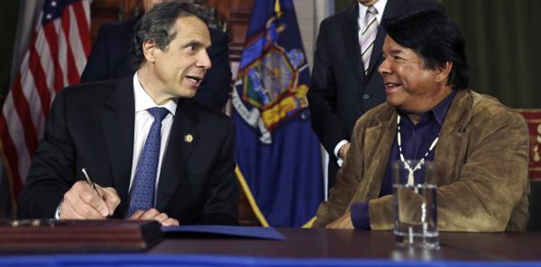 In less than a month of intense negotiations, decades of animosity and contentious lawsuits between the Oneida Indian Nation and the state of New York were brought to a close in a historic agreement that, if approved by the state legislature, will resolve all disputes between the two sovereigns over land rights, tax issues, gaming exclusivity and profits. Ray Halbritter, Oneida Indian Nation Representative, and New York Governor Andrew Cuomo announced the monumental agreement that will recognize the Oneida Nation’s reservation, settle all outstanding litigation and resolve all disputes over property and sales taxes, including cigarette and fuel sales, at a press conference in Albany, the state capital, on May 16. The agreement also entails payments of tens of millions of dollars from the Oneida Nation, and concession of a gaming exclusivity zone by the state. “This is indeed a defining moment in the history of the Oneida Nation and New York state,” Halbritter said. “Together today we begin a partnership in our shared prosperity in our upstate region. It’s not unlike the historical relationship the Oneida Nation had in the historical time of the Revolutionary War, when we were all under the Treaty of Canandaigua. We recognize together with the United States that peace and friendship shall be perpetual between our Nations and we’re here in that spirit today,” he said at the press conference. “This is a fair and reasonable agreement that will benefit all parties involved and the people of the Oneida Nation, Oneida and Madison [Counties], and all New Yorkers,” Cuomo said. The agreement “ends years of expensive and disruptive court battles for all parties involved and marks a new era of collaboration and commonality between the Oneida Nation and the state of New York,” Cuomo said. The deal was hammered out in negotiations that began on April 25, when Cuomo personally contacted the Oneida Indian Nation. “The governor’s office reached out to us and initiated discussions and we talked to things that are important to us and the more we talked the more we could see the possibility of [reaching an agreement] with all the parties we thought were important,” Halbritter told Indian Country Today Media Network, which is owned by the Oneida Nation. “So it was discussion and negotiation that was initially done at the governor’s call, and it proceeded from there. He really took a real leadership role to make it happen.” Among the important parties involved in the negotiations were Oneida County Executive Anthony Picente and Madison County Chairman John Becker, who will be signatories to the finalized agreement. Both men were brought into the negotiations shortly after Cuomo’s initial call to Oneida. The governor summoned the two county leaders, who had waged legal battles against the Oneida Nation for decades, to the governor’s office the next day, The Post-Standard reported. Cuomo warned both counties that if they didn’t go along with the plan—meaning if they didn’t drop their lawsuits and tax claims against the Oneida Nation—the counties would forfeit a share of the Oneida Nation’s payments that were under negotiation, and the state would stop funding the counties’ three lawsuits against the Oneida Nation. As part of the settlement, the Oneida Nation will pay the state am amount equal to 25 percent of its net win from slot revenues. The state will pay a quarter of its 25 percent to Oneida County, where the Oneida Nation’s Turning Stone Resort Casino is located. (The initial estimate for that payment is copy2.5 million annually.) Madison County will receive a one-time payment of copy1 million to compensate for past tax claims. Additionally, the state will make annual payments of $2.5 million to Oneida County and $3.5 million to Madison County from its share. The Oneida Nation also agreed to a permanent cap of more than 25,000 acres of land to be taken into trust by the Interior Department—17,000 in Oneida County and 8,000 in Madison County—provided that the state and counties not oppose the Oneida Nation’s applications to place most of those lands into trust. This was an important provision for the state, Cuomo said. “The cap provides a limit on the amount of land that can go into trust; it will afford permanence to Oneida County and to Madison County and it effects the resolution of the [Oneida Nation’s] land claims.” The agreement by the state and the counties not to oppose more than 25,000 acres of trust land was equally or perhaps even more important to the Oneida Nation, Halbritter said. ”We have a way of talking about it—We are told that peace is the greatest gift the Creator can give to mankind, and this brings a level of peace from the conflict and I think that’s a really important, intangible quality. And then comes the material aspects of the agreement. They all work together.” The land has always been the most important element to the Oneida Nation, Halbritter said. “The agreement brings security and finality to the land, which is one of the important goals for us. And, of course, what is land without an economic base? So we were able to secure our land and our economic base, and those two things are pretty important. Other things are too, but the peace, the end of disputes, bringing security to the land and economy—those are the most important elements.” The Interior Department agreed in 2008 to take into trust a little more than 13,000 acres of the 17,350 acres the tribe owns. Counties opposed that move, but they will now drop their opposition and, as required by the settlement, will support trust land for the entire 17,350 acres. Halbritter pointed out that the Oneida Nation’s land holdings are not contiguous. “Early in the process, the counties asked us to purchase land that was not really contiguous, so we did that. Some of [the parcels] are contiguous, and with the additional acreage that we’re now allowe