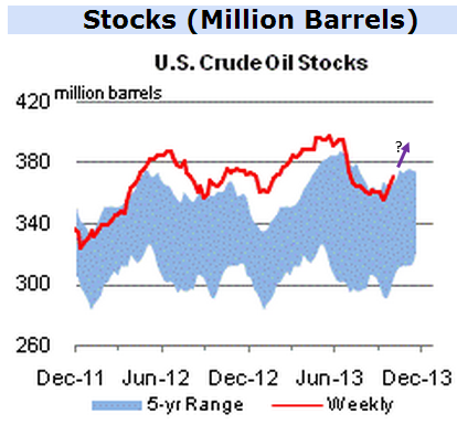 3. Related to the slower growth expectations for the US as well as to the recent government shutdown is the buildup of crude oil inventories.