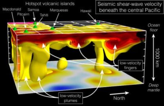 Beneath Earth's Surface, Scientists Find Long 'Fingers' of Heat![]() Slow-moving seismic waves, hotter than surrounding material, interact with plumes rising from the mantle to affect the formation of hotspot volcanic islands. (Credit: Illustration: Scott French Sep. 5, 2013 — Scientists seeking to understand the forces at work beneath the surface of Earth have used seismic waves to detect previously unknown "fingers" of heat, some of them thousands of miles long, in Earth's upper mantle. Their discovery, published Sept. 5 in Science Express, helps explain the "hotspot volcanoes" that give birth to island chains such as Hawai'i and Tahiti. Many volcanoes arise at collision zones between the tectonic plates, but hotspot volcanoes form in the middle of the plates. Geologists have hypothesized that upwellings of hot, buoyant rock rise as plumes from deep within Earth's mantle -- the layer between the crust and the core that makes up most of Earth's volume -- and supply the heat that feeds these mid-plate volcanoes. But some hotspot volcano chains are not easily explained by this simple model, a fact which suggests there are more complex interactions between these hot plumes and the upper mantle. Now, a computer modeling approach, developed by University of Maryland seismologist Vedran Lekic and colleagues at the University of California Berkeley, has produced new seismic wave imagery which reveals that the rising plumes are, in fact, influenced by a pattern of finger-like structures carrying heat deep beneath Earth's oceanic plates. Seismic waves are waves of energy produced by earthquakes, explosions and volcanic eruptions, which can travel long distances below Earth's surface. As they travel through layers of different density and elasticity, their shape changes. A global network of seismographs records these changing waveforms. By comparing the waveforms from hundreds of earthquakes recorded at locations around the world, scientists can make inferences about the structures through which the seismic waves have traveled. The process, known as seismic tomography, works in much the same way that CT scans (computed tomography) reveal structures hidden beneath the surface of the human body. But since we know much less about the structures below Earth's surface, seismic tomography isn't easy to interpret. "The Earth's crust varies a lot, and being able to represent that variation is difficult, much less the structure deeper below" said Lekic, an assistant professor of geology at the College Park campus. Until recently, analyses like the one in the study would have taken up to 19 years of computer time. While studying for his doctorate with the study's senior author, UC Berkeley Prof. Barbara Romanowicz, Lekic developed a method to more accurately model waveform data while still keeping computer time manageable, which resulted in higher-resolution images of the interaction between the layers of Earth's mantle. By refining this method, a research team led by UC Berkeley graduate student Scott French found finger-like channels of low-speed seismic waves flowing about 120 to 220 miles below the sea floor, and stretching out in bands about 700 miles wide and 1,400 miles apart. The researchers also discovered a subtle but important difference in speed: at this depth, seismic waves typically travel about 2.5 to 3 miles per second, but the average seismic velocity in the channels was 4 percent slower. Because higher temperatures slow down seismic waves, the researchers infer that the channels are hotter than the surrounding material. "We estimate that the slowdown we're seeing could represent a temperature increase of up to 200 degrees Celsius," or about 390 degrees Fahrenheit, said French, the study's study lead author. At these depths, absolute temperatures in the mantle are about 1,300 degrees Celsius, or 2,400 degrees Fahrenheit, the researchers said. Geophysicists have long theorized that channels akin to those revealed in the computer model exist, and are interacting with the plumes in Earth's mantle that feed hotspot volcanoes. But the new images reveal for the first time the extent, depth and shape of these channels. And they also show that the fingers align with the motion of the overlying tectonic plate. The researchers hypothesize that these channels may be interacting in complex ways with both the tectonic plates above them and the hot plumes rising from below. "This global pattern of finger-like structures that we're seeing, which has not been documented before, appears to reflect interactions between the upwelling plumes and the motion of the overlying plates," Lekic said. "The deflection of the plumes into these finger-like channels represents an intermediate scale of convection in the mantle, between the large-scale circulation that drives plate motions and the smaller scale plumes, which we are now starting to image." "The exact nature of those interactions will need further study," said French, "but we now have a clearer picture that can help us understand the 'plumbing' of Earth's mantle responsible for hotspot volcano islands like Tahiti, Reunion and Samoa." Copyright 2013 by ScienceDaily, http://www.sciencedaily.com/releases/2013/09/130905142815.htm |