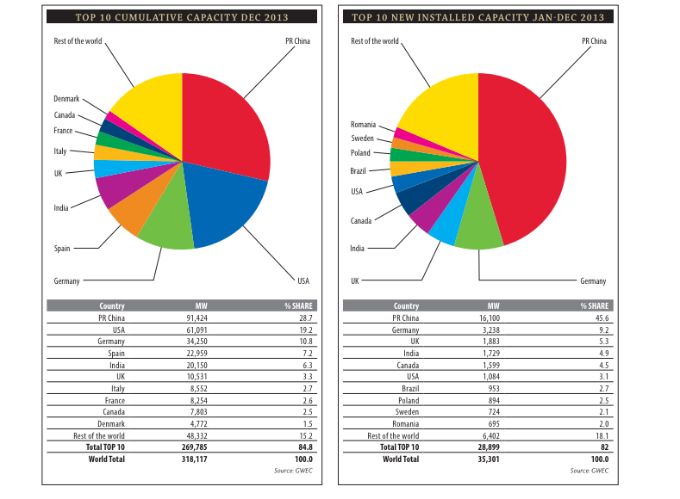You can download the entire Global Wind Report Annual Market Update 2013 at this link. Lead image: Palouse Wind Farm Credit: First Wind.