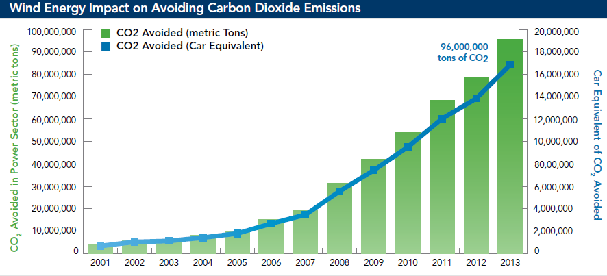 Rapid development of the U.S. wind energy industry has led to significant reductions in power sector carbon emissions -- by 96 million metric tons, or 4.4 percent -- according to the American Wind Energy Association (AWEA).