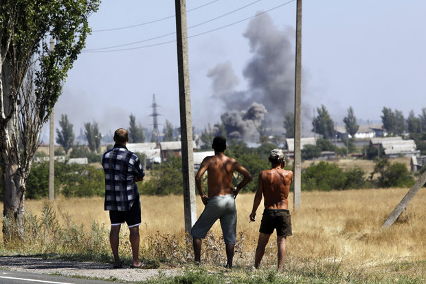 Local residents watch as smoke rises during shelling in Novoazovsk, eastern Ukraine, on Aug. 27, 2014. “We have never concealed the fact that there are many Russians among us and without them it would be very hard and difficult to fight today,” Zakharchenko said. Ukraine’s dollar bonds due July 2017 fell for a seventh straight day, pushing the yield up 62 basis points to 11.54 percent, the highest in more than three months. Investors holding the debt have lost 3.8 percent this month, the most after Argentina, Venezuela among all nations tracked by the Bloomberg Dollar Emerging Market Sovereign Bond Index. Russia’s Micex Index (INDEXCF) of 50 stocks lost 2.1 percent to 1,417.42 as of 5 p.m. in Moscow, the biggest intraday slide in a month. The ruble fell 1.8 percent to 36.8065 per dollar, the weakest since 2003, date compiled by Bloomberg show. Death TollUkraine’s military said yesterday that its forces killed 225 rebels and destroyed three tanks in the previous 24 hours. Thirteen government soldiers were killed and 36 wounded, a military spokesman, Andriy Lysenko, said at a briefing in Kiev. Ukrainian troops are also fighting to maintain control of Ilovaysk, east of Donetsk, and two other towns, the military press service said on Facebook. There was no independent confirmation of the military figures for separatist deaths. “The Russians are all about process and are clearly playing for time to reinforce separatist positions or put in more troops and arms,” Joerg Forbrig, senior program officer for central and eastern Europe at the Berlin bureau of the German Marshall Fund of the U.S., said by phone. To contact the reporters on this story: Kateryna Choursina in Kiev at kchoursina@bloomberg.net; Volodymyr Verbyany in Kiev at vverbyany1@bloomberg.net; David McQuaid in Warsaw at dmcquaid1@bloomberg.net To contact the editors responsible for this story: James M. Gomez at jagomez@bloomberg.net Brad Cook, Paul Abelsky ©2014 Bloomberg L.P. All Rights Reserved http://www.bloomberg.com/news/2014-08-28/ukraine-rebel-assaults-spark-russia-invasion-claims.html |