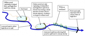 Putting something called "Natural Engineering" to work in a five-year research project, Newcastle University in cooperation with the Environment Agency are discovering the benefits utilizing the land’s natural defenses to slow river flow downstream and prevent flooding. Slowing down water in anticipation of flooding events is being tested all over the world. Strategies include use of retention basins; wetlands development; levee systems and flood-walls but Newcastle University researchers directed by Dr. Mark Wilkinson are employing additional water retention strategies further up the catchment system. The Belford Burn is a small catchment system located in Northumberland, a community just south of the Scottish border. It traverses through a town called Belford flooding it regularly. To slow flooding waters, the team changed the natural flow pathways of the small catchment system to hinder its natural flow, manage the land's run-off and reduce flooding risks in low-lying areas. The changes also controlled some pollution by preventing phosphorous and nitrates from being washed off the land. According to Wilkinson, "What we have shown at Belford is that by employing so-called 'soft engineering solutions' to restrict the progress of water through a catchment — disconnecting fast-flow pathways and adding storage — we have been able to reduce the risk of flooding in the lower areas and, most importantly, in the town. "Belford is not unique and there are many other areas around the UK where these solutions could make a significant impact and potentially protect peoples' homes from some of the more severe flooding we are seeing at the moment." The UK's Natural Flood Management program aims to reduce downstream maximum water height of a flood or peak by delaying the arrival of flooding waters downstream thus increasing preparation time downstream or natural absorbtion. These more sustainable delay tactics include restricting the progress of water through a catchment by relying any one of the following environmental mechanisms or any combination thereof: -Holding and storing water in ponds, ditches and field attenuation bund or embankment. -Increasing soil infiltration through the creation of 'infiltration zones' to help water get into the soil at certain locations, such as tree belts. -Slowing water by increasing resistance to its flow, such as planting within the floodplain or planting a riverside woodland. -Redirecting water by channeling it away from the main flow into temporary water storage areas or buffer zones thus holding waters back until the flood peak drops. This increases the length of the river decreasing its slope, and slowing down its flow. Read more at Newcastle University. Natural Engineering schematic image via Crew Centre of Expertise for Waters. 2014©. Copyright Environmental News Network |