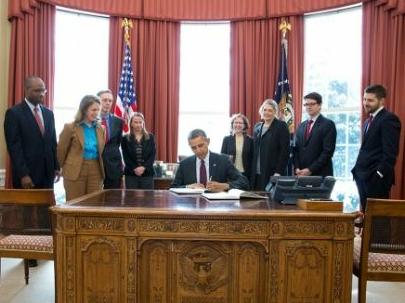 Climate Figures Large in Obama’s FY 2015 BudgetWASHINGTON, DC, March 4, 2014 (ENS) – President Obama today released a $3.9 trillion budget plan for Fiscal Year 2015 with many green features, including funds for his Climate Action Plan and a new Climate Resiliency Fund. ![]() President Barack Obama signs copies of the FY 2015 Budget as Sylvia Mathews Burwell, director, Office of Management and Budget, and OMB staff look on in the Oval Office, March 4, 2014. (Official White House Photo by Pete Souza) President Obama said today, “This budget adheres to the spending levels that both parties in both houses of Congress already agreed to. But it also builds on that progress with what we’re calling an Opportunity, Growth and Security Initiative that invests in our economic priorities in a smart way that is fully paid for by making smart spending cuts and closing tax loopholes that right now only benefit the well-off and the well-connected.” “Our budget is about choices,” Obama said. “It’s about our values. As a country, we’ve got to make a decision if we’re going to protect tax breaks for the wealthiest Americans, or if we’re going to make smart investments necessary to create jobs and grow our economy, and expand opportunity for every American.” “The American people have made clear time and again which approach they prefer. That’s the approach that my budget offers,” he said. “That’s why I’m going to fight for it this year and in the years to come as President.” Billion Dollar Climate Resilience Fund The $56 billion Opportunity, Growth, and Security Initiative, split evenly between defense and non-defense funding, allots $1 billion for a Climate Resilience Fund, which invests in research to better understand the projected impacts of a changing climate and help communities plan and prepare. White House Office of Management and Budget Director Sylvia Mathews Burwell today called the Climate Resilience Fund, “an innovative piece of work.” Burwell said, “We take very seriously our partnership with state, local and tribal governments who are engaged now in deliberate work to prepare and coordinate planning for the impacts of climate change, including the extreme weather conditions which many parts of the country have been experiencing.” “It includes investing in research and unlocking data, and helping communities plan and prepare, and funding breakthrough technologies and resilient infrastructure that will help communities across the country better prepare for the effects of climate change,” she said. With California in the grip of the worst drought in state history and the East and Midwest lashed by record-setting snow storms, the support for Obama’s new Climate Resilience Fund is strong. The Climate Resilience Fund meets with the approval of National Farmers Union President Roger Johnson. “The President’s proposed Climate Resilience Fund will provide farmers and ranchers with much-needed assistance after extreme weather events, which are occurring with increasing frequency,” he said. “I hope Congress follows the President’s lead and takes action to comprehensively address global climate change in a way that engages and recognizes the valuable contributions the agricultural community can make to reducing our nation’s carbon footprint,” said Johnson. Steve Winkelman, director of the Center for Clean Air Policy’s adaptation and transportation programs, called the budget proposal “an important benchmark in the battle against climate change,” in part because of the Climate Resilience Fund. “This Climate Resilience Fund is fiscally smart. Hazard mitigation measures yield more than a $4 return for every $1 invested. If we prepare better now, we can trim disaster aid in the future and reduce the financial exposure of both the federal government and American businesses,” Winkelman said. “The Climate Resilience Fund will help save taxpayers billions of dollars annually, will provide greater protection to the public in the face of increasing extreme weather events, reduce human suffering, reduce business interruption and create more resilient housing and infrastructure,” he said. Nearly Eight Billion for Environmental Protection The $7.89 billion requested for the U.S. Environmental Protection Agency would fund core environmental and health protections such as climate change and air quality, toxics, chemical safety and clean water and environmental justice, while trimming the EPA request by nearly $310 million below what the agency has this year. EPA Administrator Gina McCarthy said, “Our request focuses our resources on the things that really matter to the people of this country. We will seek to make a visible difference – whether it is protecting our precious waters and leaving our children a legacy so they can safely drink water from their small community water systems and fish and swim in their local rivers; reducing air pollution along roadways and neighborhoods; or cleaning up communities to maximize environmental and economic benefits.” The President’s EPA budget request for climate change and air quality of $1.03 billion, a $41 million increase compared to FY 2014 enacted levels, includes $199.5 million to address what McCarthy called “one of the greatest challenges of this generation and generations to come – climate change.” The FY 2015 budget provides an additional $10 million and 24 staff at the EPA over and above the base resources that support implementation of the President’s Climate Action Plan. The Climate Action Plan tasks the EPA with setting carbon dioxide emission standards for power plants and addressing emissions of methane and the family of refrigerants called hydrofluorocarbons, all of which contribute to climate change. FY 2015 resources will support the development of achievable greenhouse gas standards, regulations, or guidelines for modified, reconstructed, and existing power plants