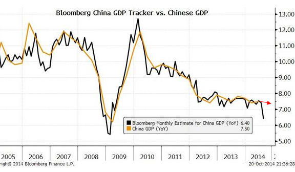 Growth is now at the lowest level since 2009, but so far the Bloomberg China GDP Tracker forecast of a sharp correction this quarter has not materialized.