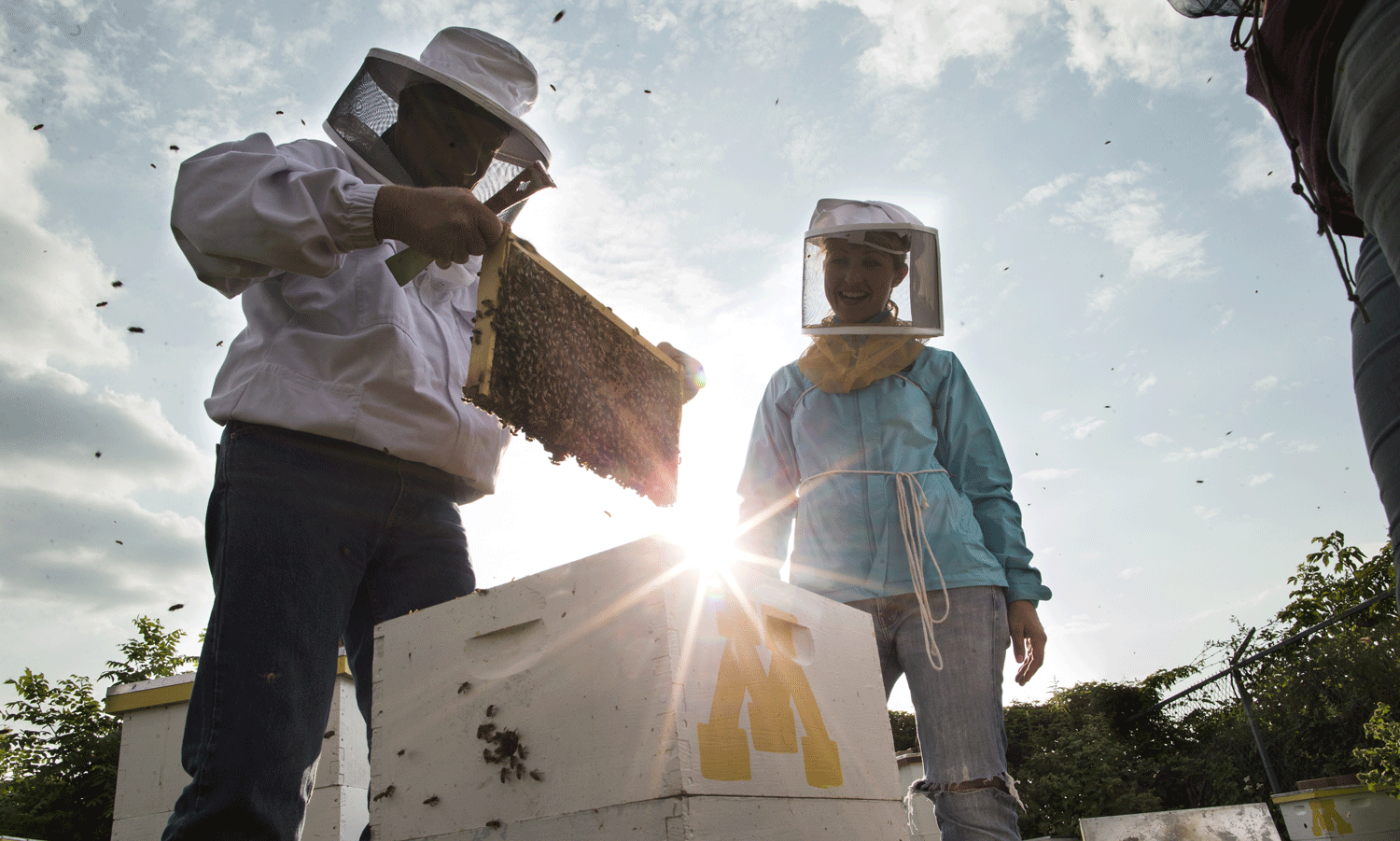 Keith Johnson took a beekeeping class with the University of Minnesota's Bee Squad, and now he has three hives. Schrad, too, is looking at his land in a new way. On a warm afternoon in August, he eyed the strip between his cornfield and the dirt road that runs by it. He had just mowed the strip, which had been thick with goldenrod and other late summer wildflowers. “Do bees use that this late in the year?” he asked. “I could wait a little longer before I cut that.” But from where Ehrhardt sits, between the big seed companies and the end of their pipeline at the farm, it appears that the fate of pollinators in rural Minnesota will come down to demand, markets and economics. He sells all kinds of seeds to all kinds of farmers. He’s keenly aware of the market for organics and the rising demand among farmers for non-GMO seeds — the fastest growing segment of his seed business. Both of those types of crops command a considerably higher price at the local elevator than the genetically engineered crops. Farmers, he said, would be happy to grow bee-friendly corn. “But there have to be consumers willing to pay for that.”