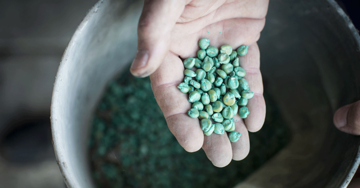 Mac Ehrhardt often feels like he has one leg on either side of a barbed-wire fence. On one side stand the farmers who have bought seed from his family’s business for three generations, and who rely religiously on insecticides to protect their crops. On the other is Ehrhardt’s growing conviction that southern Minnesota’s two-tone landscape of corn and soybeans has become a barren and toxic place for a crucial player in the nation’s food system — the honeybee. Ehrhardt’s uncomfortable position at the Albert Lea Seed Company reflects the powerful role that farmers could play in the plight of the bees. Though they represent just 2 percent of Minnesota’s population, farmers control half its land. And their embrace of the monocultures and pesticides that form the basis of modern industrial agriculture has been implicated in the decline of bees and pollinators. But as long as farmers sit at the receiving end of an agri-chemical pipeline that fuels the nation’s rural economy, not much is likely to change, he said. “No one in this county is getting paid for growing bee-friendly corn,” Ehrhardt said. Organic farmers might ask why use chemicals at all, he added. “I respect that. But out here in farm country, that’s not what’s happening.” The modern farmerGary Schrad, one of Ehrhardt’s customers, doesn’t farm the way his father did. There was a time when farmers would plant their crop, harvest it, and then save some of the seed — or buy a neighbor’s seed — to plant the next year’s crop. Not anymore. Now, most of the seed Schrad plants on his 3,500 acres comes from corporations such as Monsanto and Syngenta, and they come embedded with astonishing genetics. One type of gene makes corn, soybeans and other crops immune to herbicides, including Roundup, allowing farmers to kill weeds at will without killing their crops. Farmers have few alternatives when they buy seeds. Three corporations control more than half the world’s commercial seed market, and the top 10 control three-fourths. As a result, weeds and wildflowers between the rows are sparse — leaving bees and butterflies to forage in the smaller and smaller areas that are left: state parks, wildlife preserves and tiny strips of land between the roads and the fields. Another added gene makes the plants themselves poisonous to insects such as corn rootworm that are the bane of farmers. But it’s not foolproof against all insects. The solution? A new class of insecticides first introduced in 1994 that is relatively harmless to people and animals — neonicotinoids. Now added routinely as a coating on seeds, neonicotinoids provide additional insurance against soil pests. And, like the genetic traits, they become an intrinsic part of the plant as it grows. “It started in 2002,” said Chuck Benbrook, a professor who studies sustainable agricultural systems at Washington University. “By 2006 neonicotinoids had cornered the market.” Gary Schrad mostly uses genetically modified seeds at his farm near Albert Lea, Minn. “The more you can protect the seed, the better the return for that acre of ground,” he said. Today, genetically engineered crops dominate agriculture, and two-thirds of the world’s cropland gets a regular dose of neonicotinoids, including 90 percent of corn and 60 percent of soybean acres. Farmers, in fact, have few options. The highly complex seed combinations they find on the market are determined by interwoven licensing agreements among the companies that control the seeds and the companies that make the insecticides. Often they are one and the same. Bayer CropScience and Syngenta, for example, sell seeds and make some of the most widely used neonicotinoids. Monsanto, the world’s leading seed company, uses Bayer’s neonicotinoids on some of its leading genetically altered seeds. Monsanto also developed the herbicide Roundup, as well as the genetically engineered seeds that are resistant to it. When it comes time to buy seed, farmers have a dwindling number of alternatives. Three corporations control more than half of the world’s commercial seed market, and the top 10 control three-fourths, according to ETC Group, a Canadian nonprofit that tracks emerging technologies. No one can grow patented GMO seeds. If they do, they’ll get sued by the companies that own the patents. “The fact is, the vast majority of farmers have no choice but to go down the road that the seed biotech industry has decided to lead them,” Benbrook said. “The farmer can’t go to the dealer and say: ‘Hold the Roundup Ready gene.’ It’s not the pickle on the hamburger.” It’s a costly package deal. A standard bag of GMO seed corn, pre-treated with insecticides and fungicides, enough to plant two acres, costs $300 or more, compared with about $120 for non-engineered corn that usually comes with the same kinds of coatings. That price alone provides a powerful incentive for farmers not to question the relatively low-cost neonicotinoid coating that comes with it. “The more you can protect the seed, the better the return for that acre of ground,” Schrad said. “Every seed company and every farmer has an interest in that.” In August, the dense green and gold fields of southern Minnesota roll to the horizon in all directions, a testament to the success of all that biotechnology. The GMO seeds Schrad uses have greatly reduced the need for older insecticides, some of them extremely toxic to people. But the amount of land devoted to those seeds has exploded. Today in Minnesota, about 24,000 square miles — a third of the state — are devoted to growing either corn or soybeans. “This,” Schrad said, waving an arm toward a wall of his head-high corn, “is what … Minnesota is.”