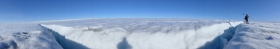 A new model developed by researchers at the University of Cambridge has shown that despite its apparent stability, the massive ice sheet covering most of Greenland is more sensitive to climate change than earlier estimates have suggested, which would accelerate the rising sea levels that threaten coastal communities worldwide. In addition to assessing the impact of the increasing levels of meltwater created and spilled into the ocean each year as the climate continues to warm, the new model also takes into account the role that the soft, spongy ground beneath the ice sheet plays in its changing dynamics. Details are published today (29 September) in the journal Nature Communications. The Greenland Ice Sheet, which is the second-largest ice sheet in the world, covers 1.7 million square kilometres - an area roughly eight times the size of the United Kingdom - and contains enough ice to raise sea levels by more than seven metres if it were to be lost altogether. Currently, due to surface melting alone, it is losing ice at a net annual rate of 200 gigatonnes, equating to 0.6 millimetres of sea level rise. A similarly large, but ultimately more uncertain source of sea level rise is tied to a net annual ice loss caused by increased movement of the ice sheet, which results in more ice being discharged into the ocean. Globally, sea levels are rising at three millimetres annually. Large ice sheets such as in Greenland are far from stationary. Different parts of the ice often move at different speeds, causing ice to shear, a phenomenon known as ice flow. Photo shows researcher negotiating a large fracture while gathering field data (photo by Poul Christoffersen) Read more at University of Cambridge. |