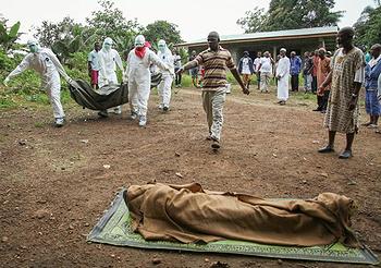 Obama Sends 3,000 Soldiers to Battle Ebola; UN Seeks $1 BillionNEW YORK, New York, September 16, 2014 – The United Nations announced today that it would need nearly $1 billion for an exceptional, international response to Ebola outbreak in West Africa. Secretary-General Ban Ki-moon declared, “Every day we delay, the cost and the suffering will grow exponentially.” “This is not just a health crisis; it has grave humanitarian, economic and social consequences that could spread far beyond the affected countries,” the secretary-general said at a press conference at UN Headquarters to outline the priorities of the new session of General Assembly. ![]() Valerie Amos, center, UN Under-Secretary-General for Humanitarian Affairs and Emergency Relief Coordinator; with Bruce Aylward, left, assistant director-general for polio, emergencies and country collaboration, World Health Organization; David Nabarro, right, UN System senior coordinator for Ebola, during the press conference, September 16, 2014. (Photo by Jean-Marc Ferré courtesy UN) Hours earlier in Geneva, Dr. David Nabarro of the UK, United Nations system senior coordinator for Ebola, Valerie Amos of the USA, UN emergency relief coordinator, and Bruce Aylward of Canada, assistant director-general for polio, emergencies and country collaboration for the UN World Health Organization (WHO), presented the Overview of Needs and Requirements document. The needs total $987.8 million, most to cover activities in the three most-affected countries of Guinea, Liberia, and Sierra Leone for six months. “It’s clear that if not dealt with effectively now, Ebola could become a major humanitarian crisis in countries currently affected,” said Amos. “These countries were building their economies and institutions. Now their capacity to deliver the necessities of daily life for their people is on the brink of collapse. The Ebola outbreak poses a serious threat to their post-conflict recovery…We must act now, if we want to avoid greater humanitarian consequences in future”. WHO, in its most recent update released today, reported a total of 4,963 cases and 2,453 deaths attributable to Ebola in those three countries. In addition, in Nigeria, there have been 21 cases and eight deaths, and in Senegal, there has been one case, but no deaths. At a press conference in Geneva, Dr. Nabarro said the Ebola crisis “requires an exceptional, international response to address both the health crisis and the broader societal, economic and political threats to the countries affected.” Amos said “Ebola is a public health emergency. But it is much more than that.” WHO’s Aylward added, “The WHO Ebola Response Roadmap, launched at the end of August, sets out what we have to do to stop Ebola. But it will take more than a plan to finish Ebola. The strong commitment made by our UN partners and Member States is what is needed to beat this virus. And real engagement by world leaders will make the difference.” ![]() Red Cross recruits in Sierra Leone bury Ebola casualties, August, 2014 (Photo by Slpp Spaingroup) At UN headquarters, the Un Secretary-General said that there will be a special focus on the Ebola during the upcoming session of the General Assembly. Secretary-General Ban also said that on Thursday, the Security Council will convene an emergency meeting on the outbreak, and he and WHO Director General Margaret Chan will outline the international action plan to contain this threat. In addition, he said, next week, the General Assembly will follow-up with a High-Level Meeting on the needs of the people and countries affected by Ebola. “Generous contributions are being announced each day, but we have a lot of catching up to do to provide the health services, food, water, sanitation and supplies that are needed,” the UN Secretary-General said. WHO today welcomed the commitment from China to dispatch a mobile laboratory team to Sierra Leone to enhance the laboratory testing capacity for Ebola virus disease in the country. In addition to lab experts, the 59-person team from the Chinese Centre for Disease Control will include epidemiologists, clinicians and nurses. The Obama Administration today said it would activate more than 3,000 military personnel and more than $600 million, in addition to the $175 million already committed to contain and combat Ebola. Under the command of a general from the U.S. Africa Command the 3,000 U.S. troops will be sent to establish a Joint Force Command headquartered in Monrovia, Liberia. They will provide regional command and control support to U.S. military activities to fight Ebola and facilitate U.S. government and international relief efforts. ![]() Liberian nurses carry the body of an Ebola victim in the Banjor Community on the outskirts of Monrovia, Liberia, August 6, 2014. (Photo by Ahmed Jallanzo / EPA) U.S. Army engineers will build additional Ebola Treatment Units in affected areas, and the U.S. government will help recruit and organize medical personnel to staff them. The U.S. Africa Command will establish a site to train up to 500 health care providers per week, enabling healthcare workers to safely provide direct medical care to patients. The U.S. Public Health Service Commissioned Corps will deploy 65 Commissioned Corps officers to Liberia to manage and staff a previously announced Department of Defense (DoD) hospital to care for healthcare workers who become ill. DoD plans to send a field-deployable hospital to Liberia and has provided more than 10,000 Ebola test kits to the Liberian Institute of Biological Research and to Sierra Leone’s Kenema Government Hospital. DoD also has provided personal protective equipment and training to local medical professionals in affected regions. DoD has requested to reprogram $500 million in Fiscal Year 2014 Overseas Contingency Operations funds for humanitarian assistance to fulfill requirements identified by the Centers for Disease Control, USAID, the Joint Sta