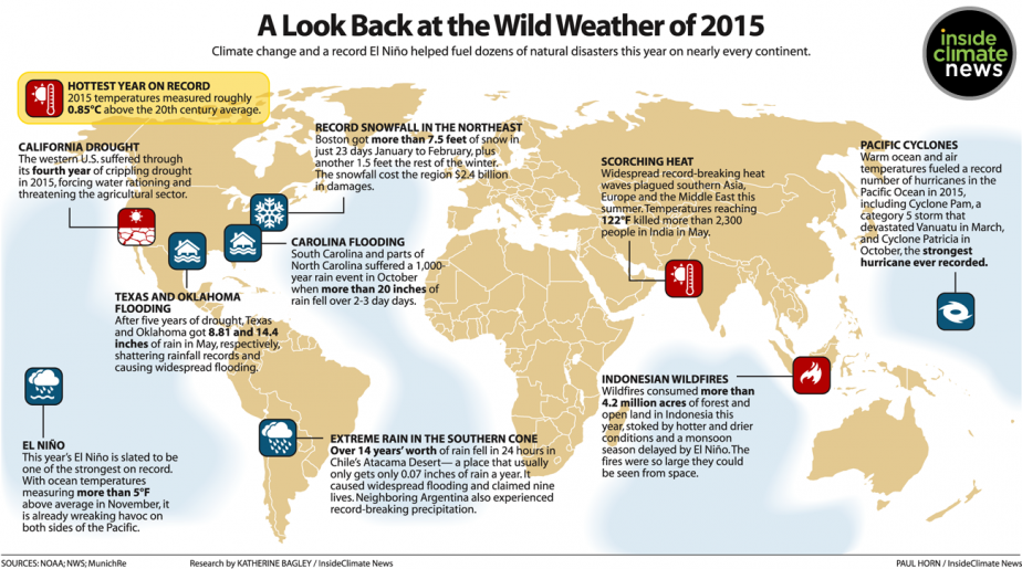 Scientists have long warned that climate change will intensify our world's worst weather. If 2015 was any indication of what's to come, humanity is in for a rough ride. Here is a roundup of the weather this year that brought climate change home to roost: