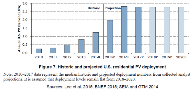 Realizing Shared Solar's Tremendous Market Expansion Potential NREL researchers estimate that 49 percent of U.S. households and 48 percent of businesses are currently unable to “host a PV system of adequate size or virtually net meter an entire system themselves.” Updating regulations and streamling procedures and paperwork associated with installing shared solar energy systems would spur development of new business models and shared solar deployments, according to the report. “Shared solar could represent 32-49 percent of the distributed PV market in 2020, growing cumulative PV deployment in 2015-2020 by 5.5-11.0 GW and representing $8.2 billion-$16.3 billion of cumulative investment.”