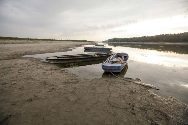 moored on the dry Danube riverbed as the water level drops due to