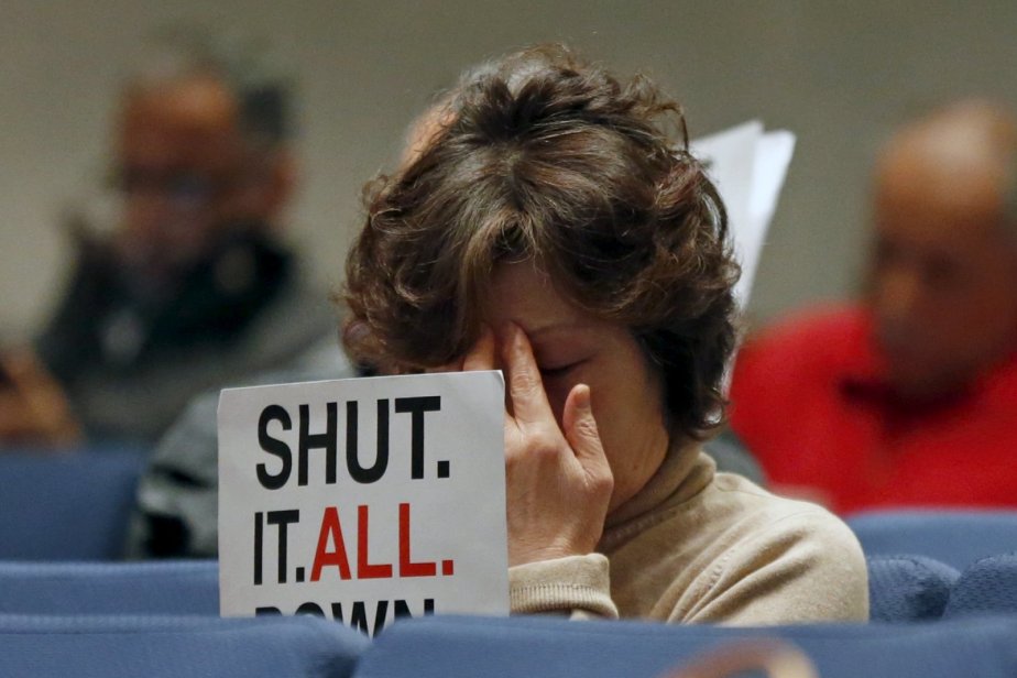 A resident living near SoCal Gas's leaking gas storage site holds a protest sign at a meeting of air quality regulators on January 20, 2016. Although the leak has been plugged for now, scientists say the long-term health risks associated with exposure to methane are unknown. Credit: REUTERS/Lucy Nicholson