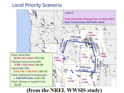 (7) In the local sources scenario, a 35% New Energy grid supply saves $20 billion ($82/MWh) and should bring a $2.20/MWh value to the western transmission system.