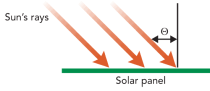 Figure 1. Illustration showing the significance of the incident angle with respect to solar intensity and power production. |