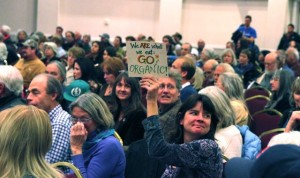 Boulder, known for its progressive stance on sustainability and the environment, naturally attracts more health-oriented people than the national average. Local surveys have shown that 71% of the people do not approve of GMOs being grown on county land. Proponents for both sides of the issue were in attendance, but the crowd’s reaction to the meeting’s proceedings made it overwhelmingly clear who was the majority. Concerned citizens arrived carrying posters and the applauses for non-GMO statements were so long and numerous, the facilitator requested they be withheld.
