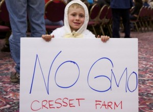 The opposite camp showed up as well. Standing out like sore thumbs, the large men, wearing blazers and cowboy hats, stood mostly in the back of the room. Their arguments were that GMOs made it easier for them to make more money.
