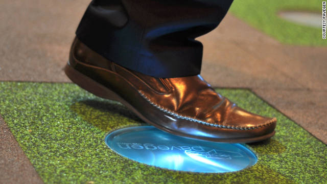 Although each step produces only enough electricity to keep an LED-powered street lamp lit for 30 seconds, Kemball-Cook says that the tiles are a real-world "crowdsourcing" application, harnessing small contributions from a large number of individuals. "We recently came back from a big outdoor festival where we got over 250,000 footsteps -- that was enough to charge 10,000 mobile phones," said Kemball-Cook. The young inventor envisages PaveGen systems being used to power off-grid appliances such as public lighting, illuminated street maps and advertising, and to be installed in areas of dense human traffic such as city centers, underground stations and school corridors. "Our main test installation is at a school in Kent (southeast England) -- where 1,100 kids have devoted their lives to stamping all over them for the last eight months," said Kemball-Cook. In its current form, the PaveGen paving slab contains a low-energy LED which lights up, expressing the energy transfer idea to the user but only consuming around 5% of the energy from each footstep. "This is what I really enjoy about the design," said Richard Miller, head of sustainability at the UK's government-funded Technology Strategy Board. "As much as it's an effective, common-sense source of some sustainable electricity, it's also a great way for people to engage with the issue of sustainability ... to feel like they are part of the solution in a very immediate, fun and visual way that doesn't make you do anything you wouldn't already be doing," said Miller. However, although generally enthusiastic about the product, for the time being Miller withholds speculation about its far-reaching impact. "As with all things of this nature, on a large scale and in the long term, its success will be determined by how cost-effective it is to produce ... If it turns out to be expensive, then it will struggle to find a place as anything more than a niche application," he said. Kemball-Cook declines to comment on the cost of each slab, arguing that their current price is much higher than what it will be when they go into mass production.