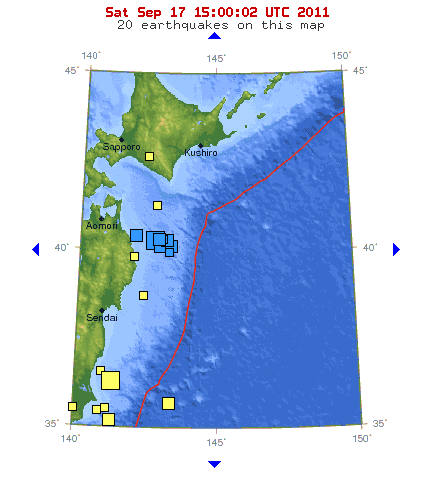 - 180 km (112 miles) ESE (109 degrees) of Aomori, Honshu,