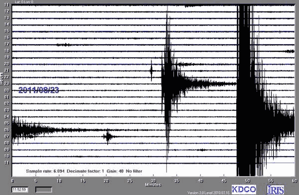 Here's the seismograph from the August 23 Denver quake that same day, as