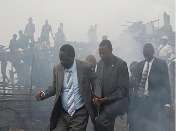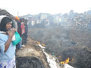 Kenya Pipeline Company Managing Director Selest Kilinda told "The Nation" newspaper that stormwater from rain in the city this morning swept the leaked fuel through storm drains into the Ngong River, which runs through the Sinai slums in Nairobi's industrial area. Sinai residents were gathering the fuel gushing from the storm drains when an explosion shortly after 9am blew off manhole covers, sending flames blasting out into the neighborhood. Witnesses said the fuel had collected near the wood-and-cardboard shanties, which quickly caught fire. Engineers poured foam on the blaze to prevent fire from backing up into the pipeline, but that did not save the residents of Sinai. Prime Minister Raila Odinga today visited Sinai to condole with families of the more than 100 people who perished. He also visited some of those injured at the Kenyatta National Hospital accompanied by his wife Ida. The hospital has issued urgent appeals for blood donations to save the lives of those admitted suffering burns from the fire.