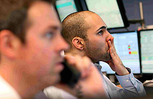 Traders work on the floor of the Frankfurt stock exchange August 05, 2011. REUTERS/Ralph Orlowski (GERMANY-BUSINESS)