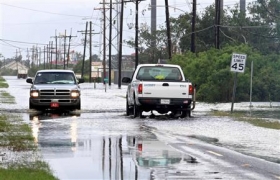 NEW ORLEANS | (Reuters) - Tropical Storm Lee moved slowly across southern Louisiana on Sunday as New Orleans' flood defenses appeared to pass one of their biggest tests since Hurricane Katrina devastated the city in 2005. The National Hurricane Center said Lee's center was about 110 miles west-northwest of New Orleans, with maximum sustained winds of 45 mph at around 5 p.m. EDT, and tropical storm-force winds extending 275 miles. The storm was moving at 5 mph. Winds were expected to weaken gradually in the next couple of days and up to 20 inches of rain was expected to fall on southeast Louisiana, the Miami-based center said. The storm has temporarily shut over 60 percent of offshore oil production. In New Orleans, the storm recalled Hurricane Katrina, which flooded 80 percent of the city, killed 1,500 people and caused more than $80 billion in damage to the tourist destination. Lee has dropped up to 13 inches of rain on New Orleans since it developed late last week. Half the city lies below sea level and is protected by a system of levees and flood gates. Some street flooding was reported, but the city's massive pumping system kept ahead of the volume and diverted the waters into Lake Pontchartrain. Low-lying parishes around New Orleans did not fare as well, as Lee's winds drove a tidal surge over levees and onto roads. "For a while we got some false hope that we might be out of the woods, but we realized overnight we would get more rain," Lafourche Parish spokesman Brennan Matherne said. "We're getting call after call about street flooding." New Orleans Mayor Mitch Landrieu warned residents to stay alert for flash floods and high winds expected before Lee moves to the northeast on Monday. "Let's not be lulled to sleep by the breaks that we've had," Landrieu said. New Orleans' levees saw less stress because Lee's winds were too weak to drive a massive storm surge into the city, as was the case during Katrina. "The levees at this point are really not being tested because the surge is not coming into the system," said Colonel Edward Fleming of the Army Corps of Engineers. "This is mainly a wind and a rain event." New Orleans' festive spirit endured despite the rain. A parade for the Southern Decadence festival, a gay and lesbian event expected to draw 100,000 people, was to continue as planned, city police said. There were isolated reports of flooding in roads and homes. No injuries or deaths were reported in Louisiana. Wet conditions associated with the storm appeared to be a factor in an early morning car wreck in Mobile, Alabama, that killed one man and left several injured. TIDAL SURGE Lee's tidal surge could spur more coastal flooding in Louisiana, as well as in Mississippi and Alabama, before drenching a large swath of the Southeast and Appalachian regions in the coming days. Storm winds have already been pushing Gulf waters inland, slamming barriers in low-lying areas such as Lafourche Parish and prompting mandatory evacuations in the coastal communities of Lafitte, Crown Point and Barataria. In Mississippi, local governments were taking precautions as forecasters predicted tides could be 2 feet to 4 feet above normal. Less than 1,000 houses were without electrical power due to the storm late on Saturday, down from about 38,000 earlier, according to utility Entergy Corp . More than 60 percent of U.S. offshore oil production, all based in the Gulf of Mexico, and over 44 percent of offshore gas production were shut as of Saturday, according to the U.S. government. Most of that output should quickly return once the storm passes. Major offshore producers like Royal Dutch Shell, Exxon Mobil Corp and BP Plc shut down platforms and evacuated staff late last week. Shell, Exxon and Anadarko Petroleum Corp have started to return workers to offshore platforms. Low-lying refineries in Louisiana that collectively account for 12 percent of U.S. refining capacity were watching the storm closely, but reported no disruptions. In the open Atlantic on Sunday, Hurricane Katia strengthened rapidly to a Category 2 storm.